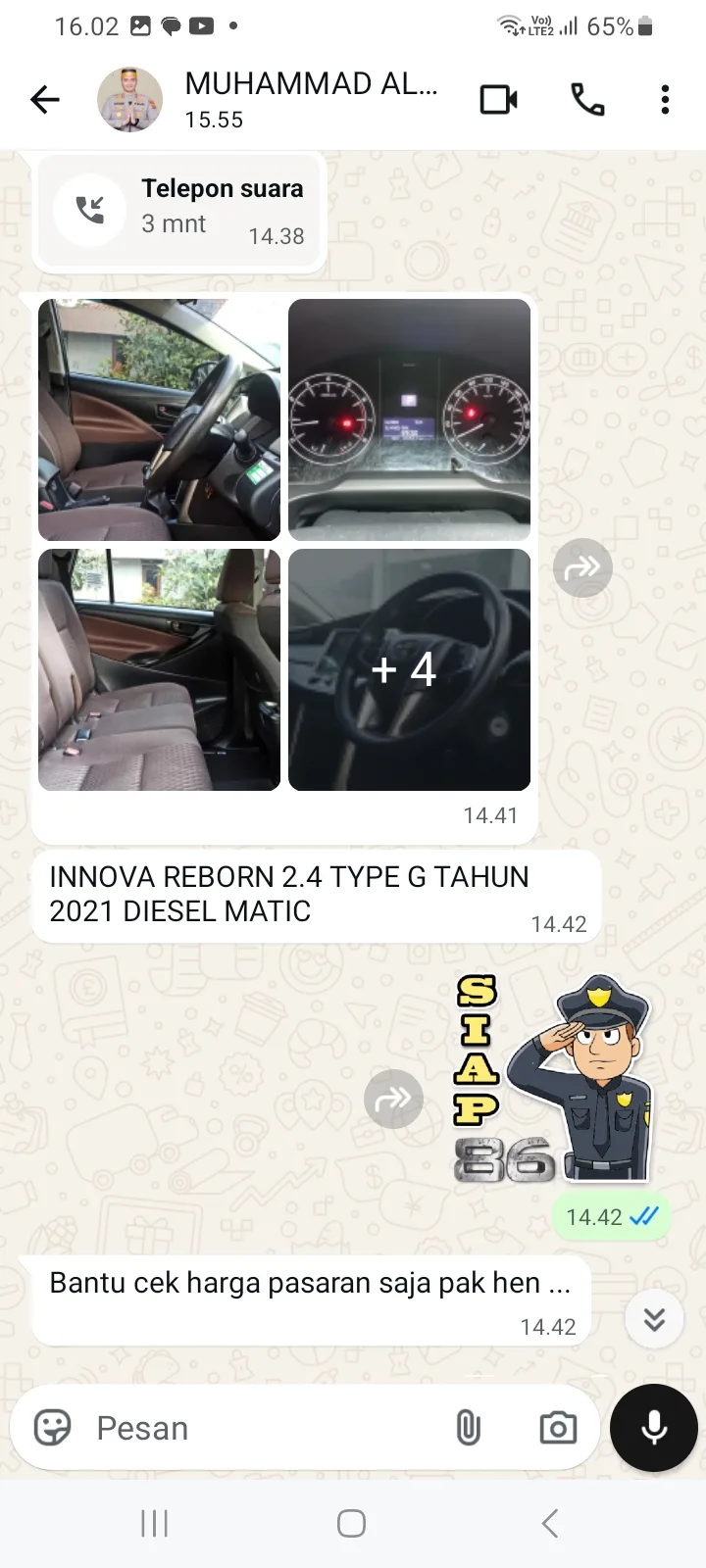 Pelaku bahkan mengirimkan foto kendaraan berupa Toyota Reborn 2.4 tipe G tahun 2021 diesel matic, yang ditawarkan dengan harga Rp180 juta lengkap dengan dokumen.